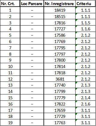 Dosarele care nu sunt afișate, nu îndeplinesc niciun criteriu de eligibilitate pentru atribuirea unui loc de parcare rezervat în parcarea supraterană Hipodrom.