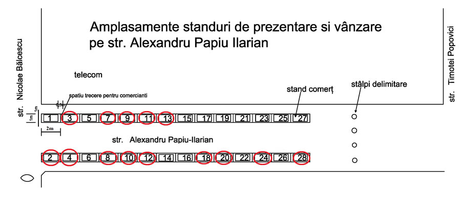 - 14 standuri de prezentare și vânzare și amplasamentul aferent acestora, în suprafață de 4 mp aparținând domeniului public situat în str. Papiu Ilarian din Municipiul Sibiu.